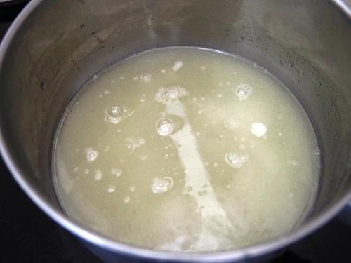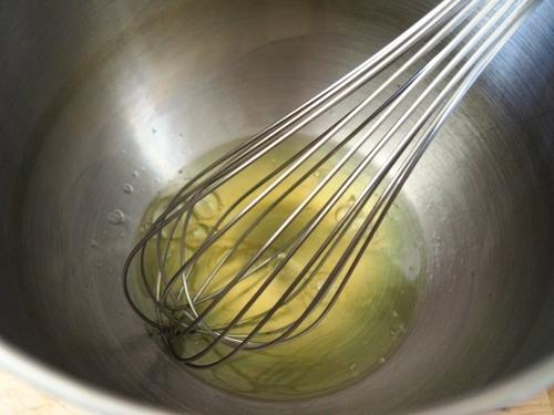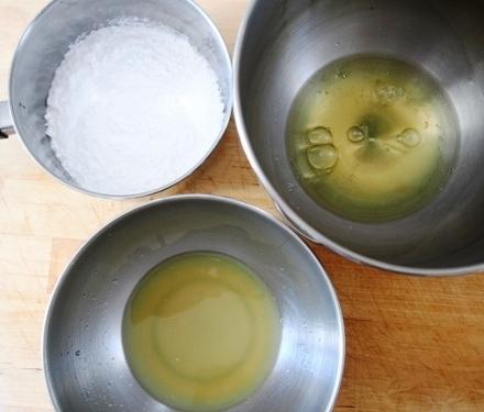 Verter en una cacerola el jugo de limón y el azúcar. Poner a fuego medio. Comenzar a batir nuestras claras suavemente.