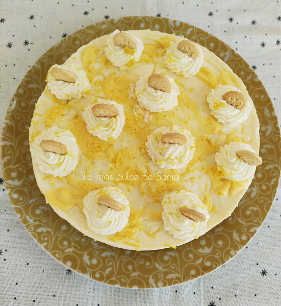 Después añadimos el zumo de limón y volvemos a mezclar bien. Ahora podemos apartar un poquito de la crema para hacer la decoración, con un poquito de colorante amarillo, pero eso a vuestra elección. Reservamos.