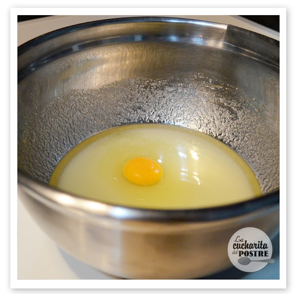 2. Mezcla el aceite con el azúcar utilizando unas varillas manuales, aunque si lo prefieres, también la puedes hacer con un robot de cocina.