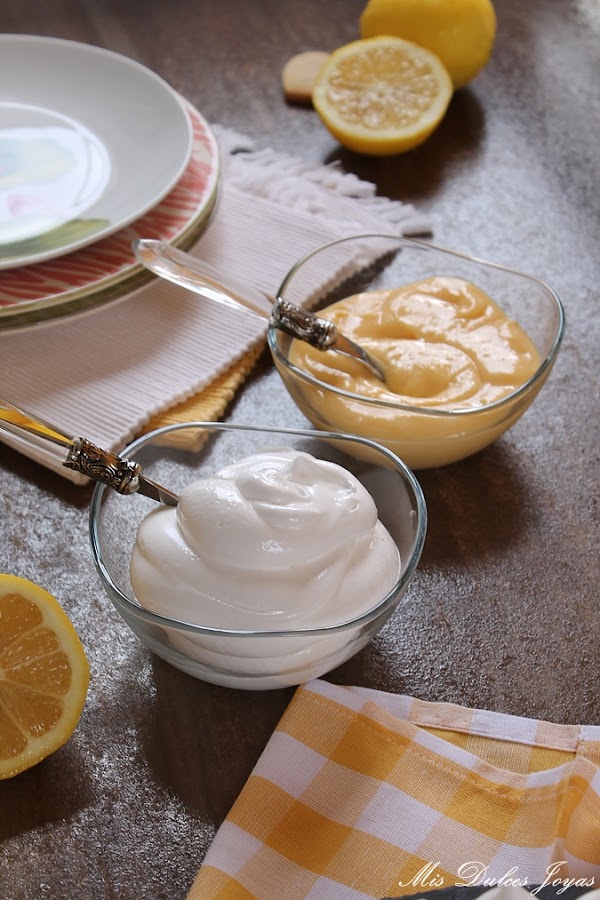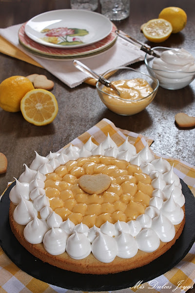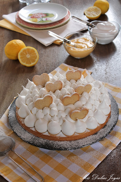 Hola de nuevo !!! A día de hoy es muy raro que no sepáis (sobre todo si me seguís desde el principio) el dulce amor que siento por la combinación limón - merengue. Es una de mis favoritas (entre tantas otras...). La verdad, esta combinación o te gusta o no te gusta nada, y a mí me fascina. Y mira que al principio cuando descubrí que el limón se llevaba muy bien con el merengue, no me atraía mucho, ya que la crema de limón en casi todas las recetas de Pies, tartas o cupcakes... la encontraba demasiado ácida. Pero, desde que tengo mi truco para aligerarla un poquito (me refiero en sabor y acidez), me encanta. El truco consiste en añadir a la crema una cuarta parte o una parte de agua en vez de zumo de limón, y oye, la cosa parece otra.
