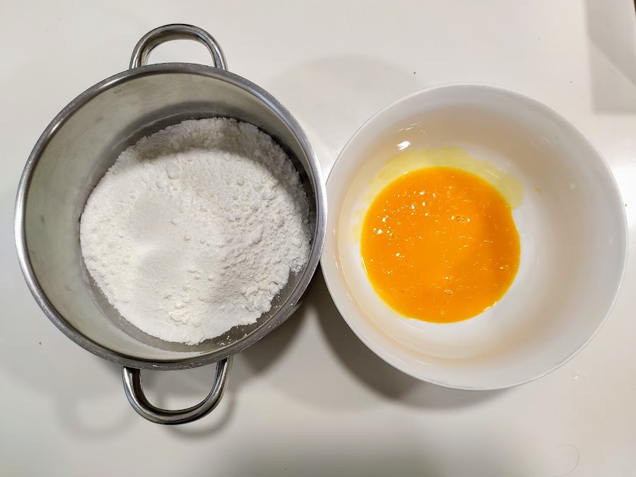 En este caso no tenemos que preparar la base, así que vamos con la crema. En una cazuela ponemos la maizena y el azúcar. En un cuenco batimos las yemas. el cuenco debe ser un poco grande porque luego añadiremos parte de la mezcla de maizena y azúcarExprimimos el zumo del limón y lo colamos para quitar la pepitas. Rallamos la piel del limón con cuidado de no utilizar la parte blanca, ya que es muy amarga