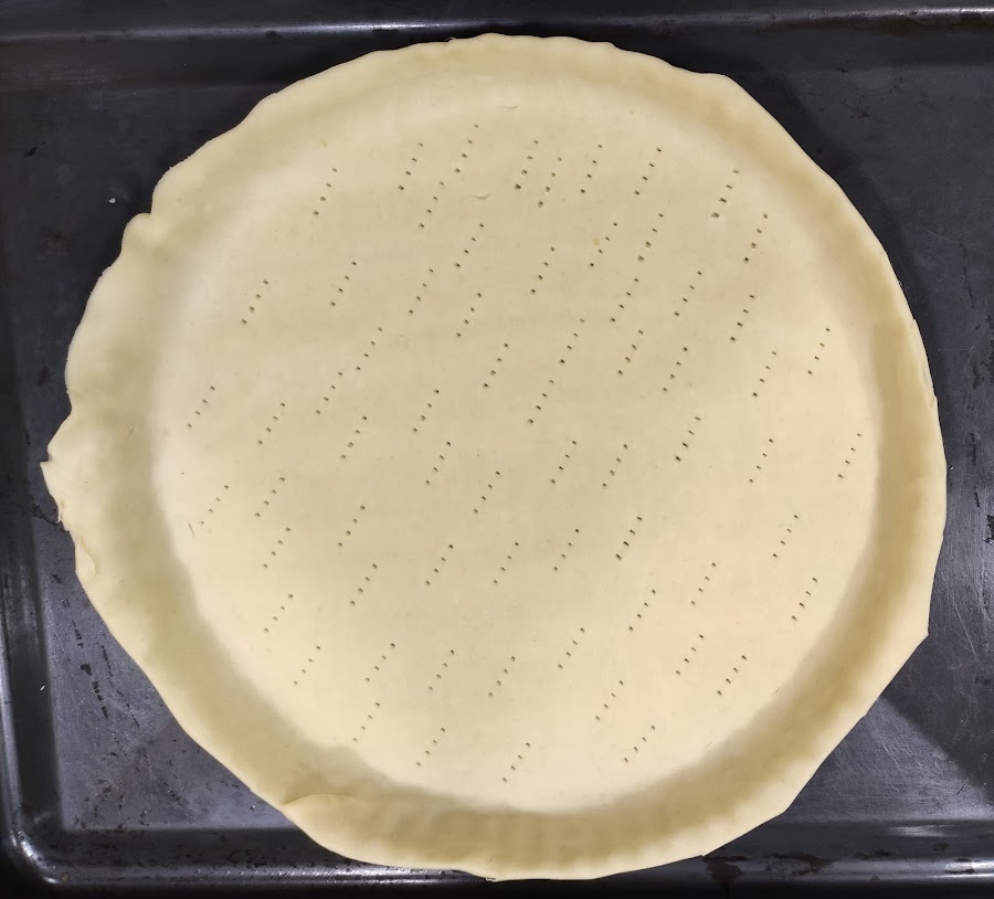 Antes de hacer el merengue vamos a hornear la base. Solamente hay que extenderla sobre el molde de la tarta y pincharla con un tenedor para que no suba. La introducimos en el horno precalentado a 200º unos 10 minutos