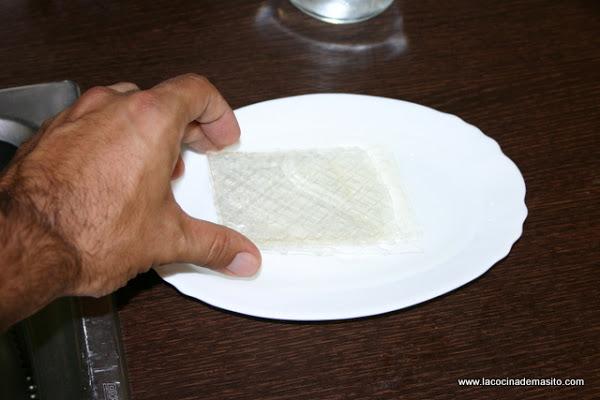 a continuacion ponemos las hojas de gelatina en agua fria a hidratar