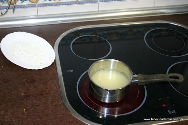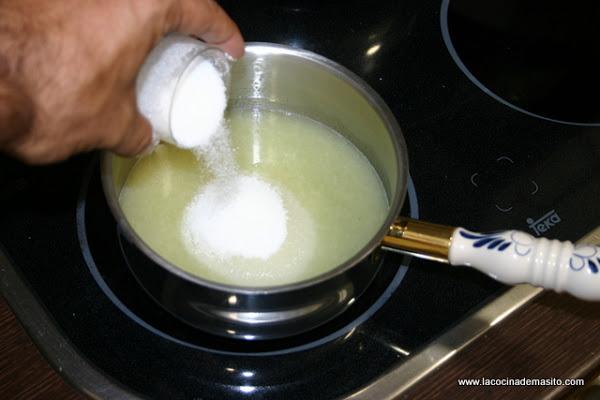 Mientras en un cazo ponemos a calentar el zumo de limón junto con la mitad de el azucar