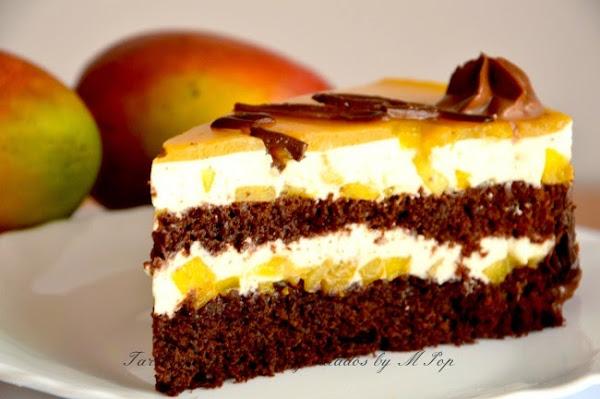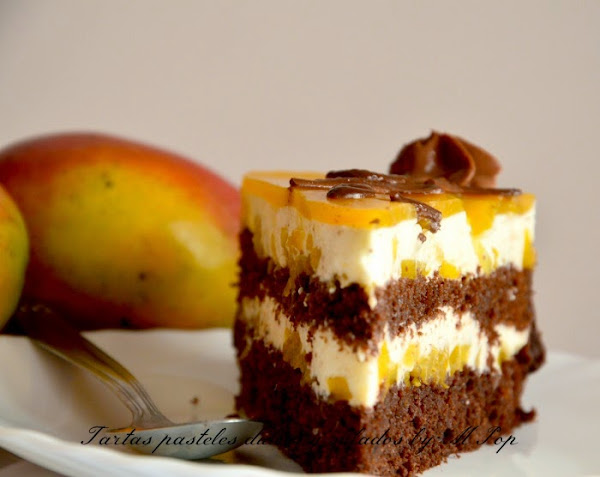 Esta tarta de mango y chocolate con mousse de yogurt es muy especial para mi, la he hecho con mucho cariño y el resultado no se ha dejado esperar. Es una tarta deliciosa, con un sabor muy equilibrado, suave, se te deshace en la boca y acaricia el paladar. La pienso repetir para la noche vieja con una decoración distinta. :)