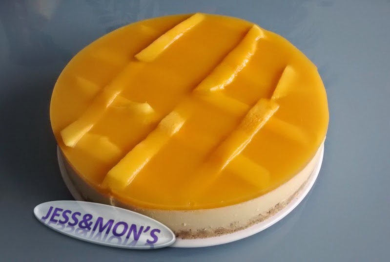 Yo la he adornando haciendo una gelatina de mango. Consiste en triturar mango, añadir 40gr de azúcar y un poco de agua hasta conseguir un volumen total de unos 250ml. Después, calentar la mezcla y añadir 3 láminas de gelatina, previamente sumergidas en agua fría unos 5 minutos. Meter en la nevera mínimo 2 horas, desmoldar y servir.