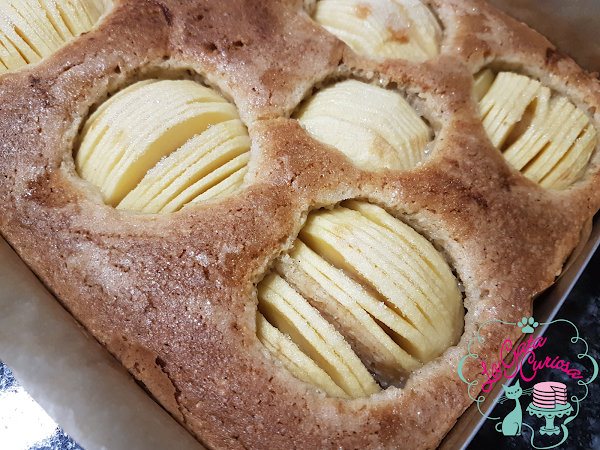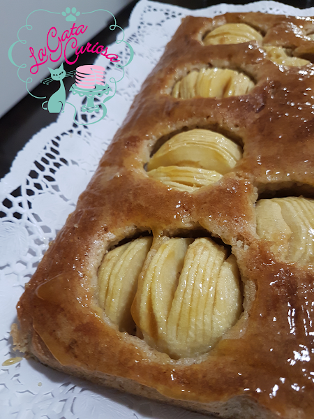 Probando nuevas formas de hacer una tarta de manzana, esta además de ser visualmente diferente lo también de sabor y textura. Si tengo ocasión de hacerla de nuevo, le haré en un molde redondo y con alguna manzana más.