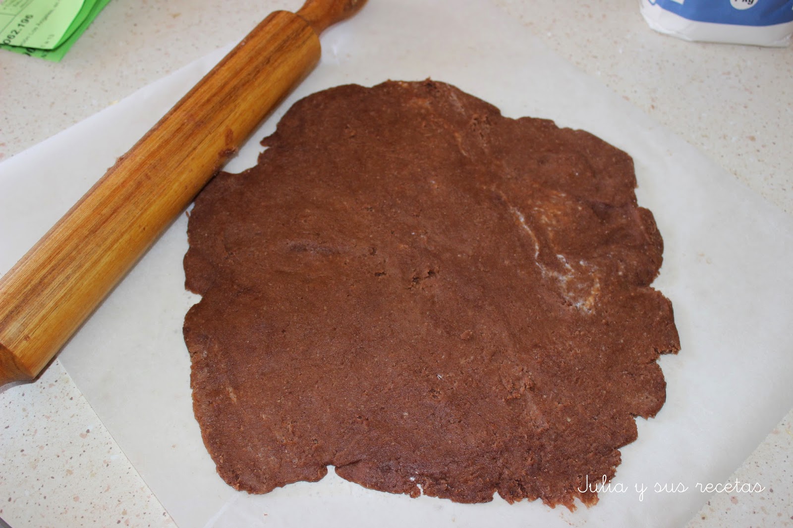 La sacamos y la ponemos entre dos film transparentes y la extendemos con el rodillo a 1/2 cm de grosor mas o menos.