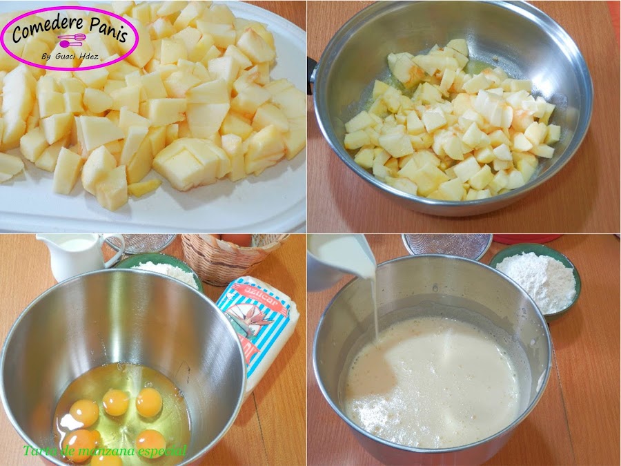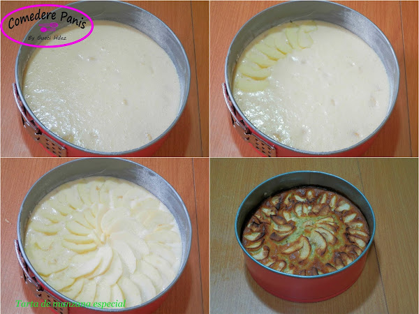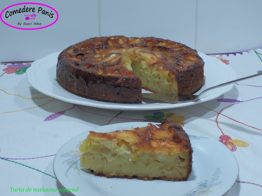 ¿ Qué tiene de especial? pues probablemente que su textura es muy parecida a un pudin y tampoco es demasiado dulce cosa que aunque parezca mentira en casa nos gusta así, que cada sabor se acentúe pero que siempre sepa a tarta de manzana. Si eres muy goloso te sugiero que le añadas un poco más de azúcar tal vez 30 o 50 gramos pero eso si no cambies ningún otro ingrediente pues en las cantidades e ingredientes está el secreto de esta tarta.