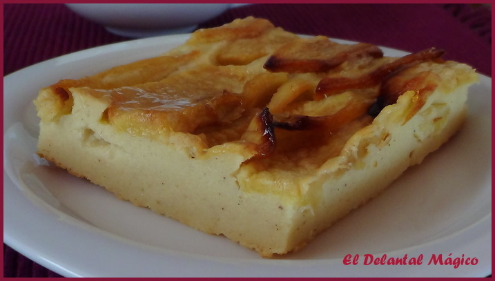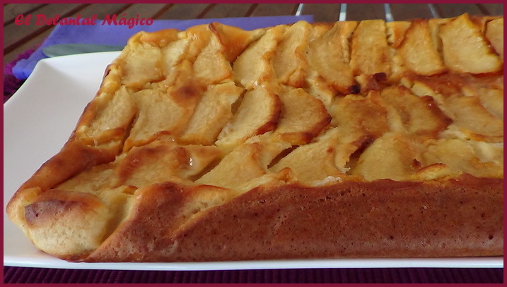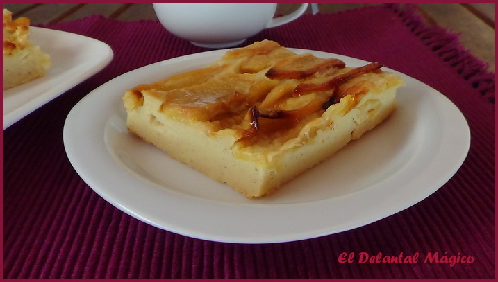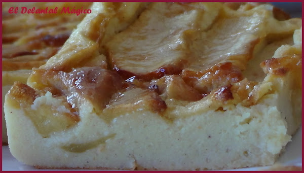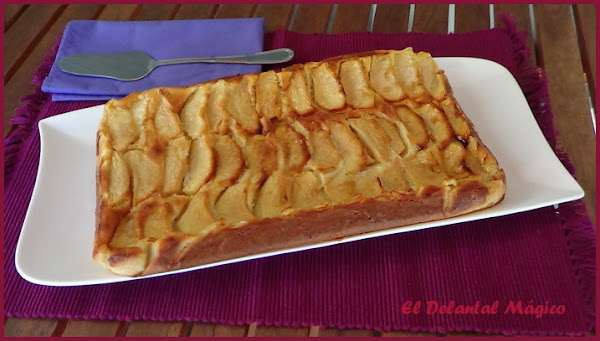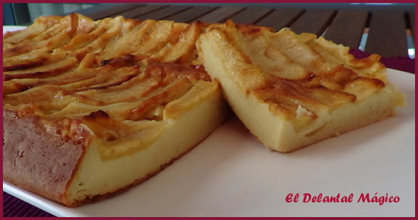 La receta se la ví a Esther (El jardín de mis recetas), me encantan todas sus recetas y esta tenía que hacerla sí o sí, no sólo por lo fácil que parecía sino porque al parecer a ella le gustan las tartas de manzana tanto como a mí así que si ella la recomendaba sabía que me gustaría, y así ha sido. Es una tarta riquísima, fácil de hacer, para que os hagais una idea os diré que la textura es parecida a la de un pudin o flan, en fin, os la recomiendo.