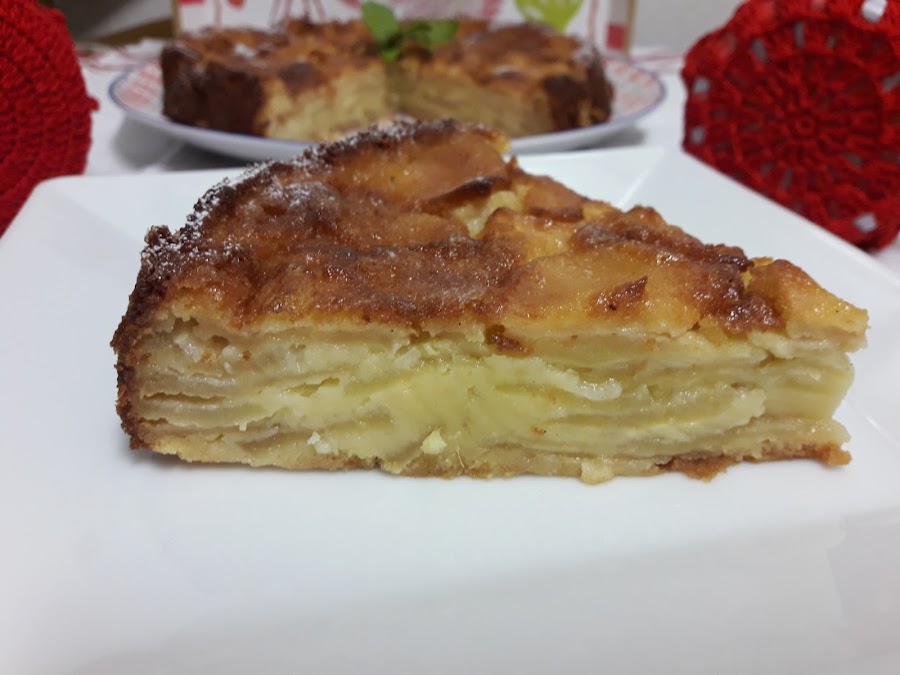 El resultado es una tarta algo húmeda, muy suave y esponjosa, nada pesada y se recomienda comer tibia y si es con helado de vainilla mucho mejor.