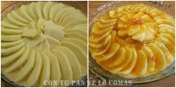 6. Colocamos el resto de las manzanas encima y metemos la tarta al micro a media potencia durante 10 minutos.