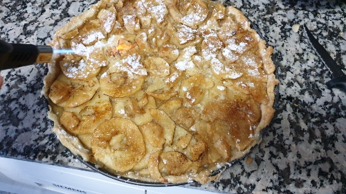 En este confinamiento hemos ido de tarta en tarta, y tiro porque me toca, aunque la mayor parte de las veces no las he hecho yo, por problemas de salud, pero que he contribuido alegremente a comerlas. Hoy os traigo una tarta de manzana fácil y rápida de elaborar. La encontré en la red y la explicó el chef Gordon Ramsey, chef del que hice, en su momento, el Pan de soda irlandés.
