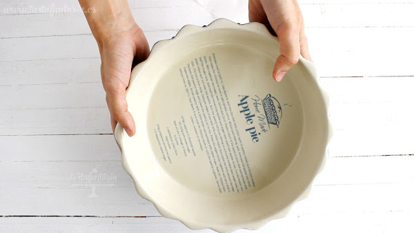 Para esta receta he estrenado nuevo molde, un molde azul de cerámica precioso... es más alto que el que usé con la tarta de arándanos, pero un poco menor de diámetro, gracias a esa altura podemos hacer que el relleno luzca mucho más grueso.