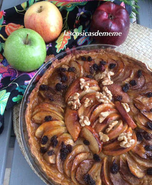 Espolvoreamos con azúcar y canela, ponemos unas pasas y nueces y unos trocitos de mantequilla.