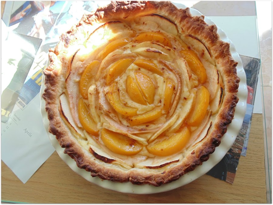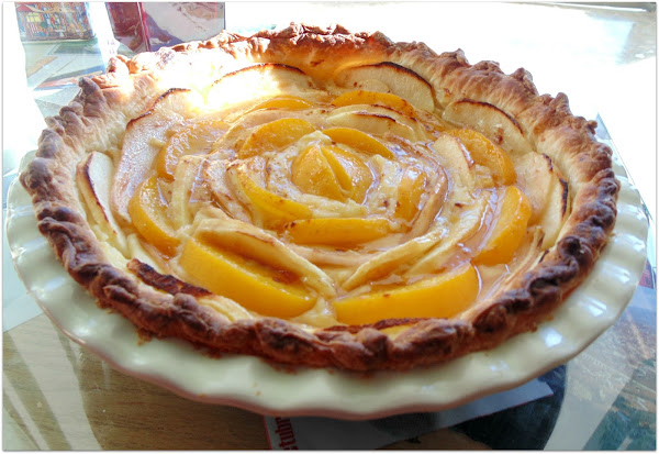La receta que os traigo es una tarta de manzana y melocotón en hojaldre como base y con crema pastelera de relleno. ¿Fácil? lo es y deliciosa lo es más todavía! Pasemos a cocina!
