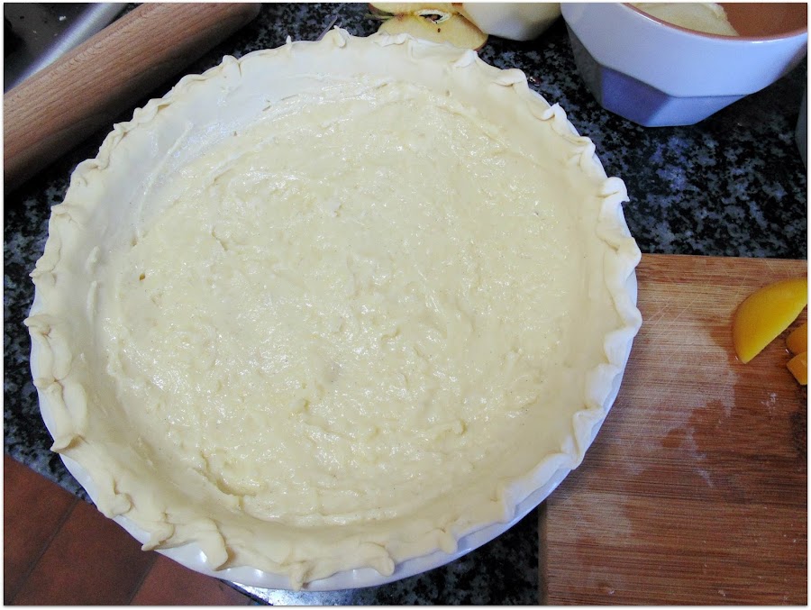 Una vez colocada nuestra masa de hojaldre le añadimos la crema pastelera que habremos elaborado y enfriado previamente o bien la víspera anterior. Os recuerdo la receta.