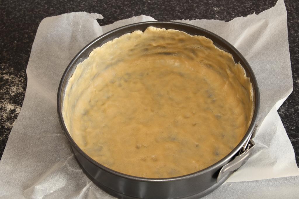 Escogemos un molde desmoldable de 22 cm. Forramos la base con papel de horno, untamos con mantequilla el fondo y las paredes. Reservamos.