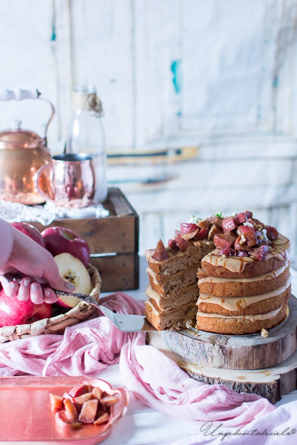 El bizcocho es super jugoso por la compota de manzana y lleno de aromas y la crema de toffee es de morir, eso si, si no eres de dulce quizás sea mejor que hagas un SMBC y le pongas caramelo.