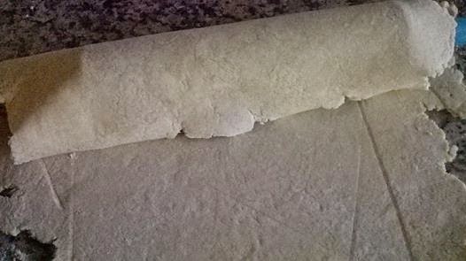 Para pasarla al molde.. ayúdate con el mismo rodillo.