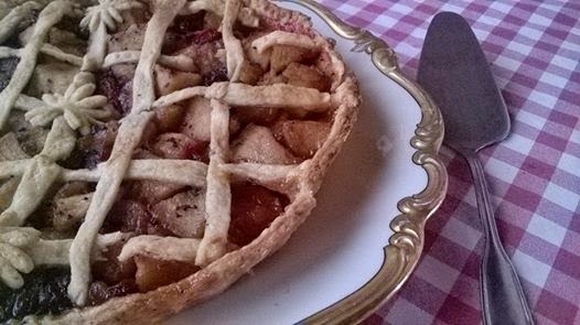 El relleno está hecho de manzana + algunas fresas + azúcar + zumo de 1/2 limón + canela + pasas + trufa rallada.