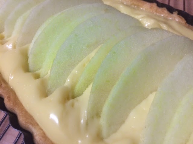 Vertemos la crema pastelera en la masa quebrada que tenemos en el molde y poco a poco vamos "clavando" las rodajas de manzana en la crema pastelera dándole la forma que queráis.