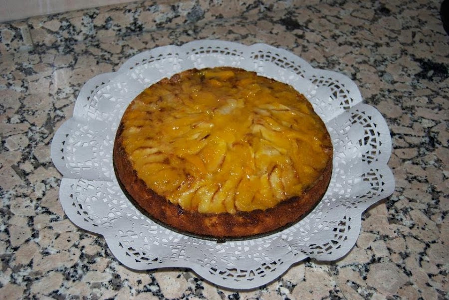 Se saca del horno y a los 5 minutos se desmolda y se cubre con la mermelada de albaricoque por encima y por los lados.