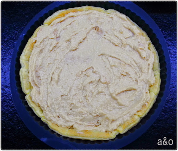 Primero. Cogemos un molde para la tarta y extendemos bien la masa, así como también la pinchamos con un tenedor, como cuando hacemos las empanadas. Esto hará que no se provoquen pompas por la masa. Luego lo metemos al horno a una temperatura de 180º, tanto por arriba como por abajo, hasta que la base quede bien dorada.