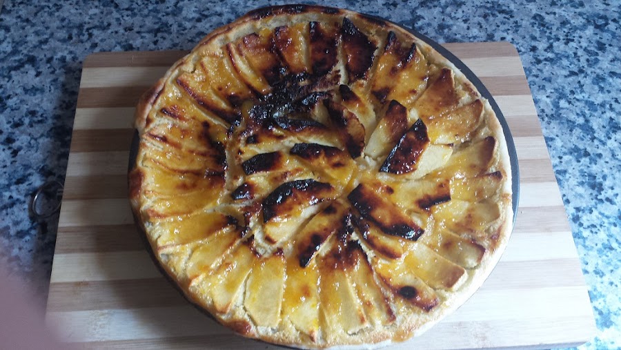 6º Cortamos el resto de las manzanas en laminas y decoramos la tarta de fuera hacia dentro.