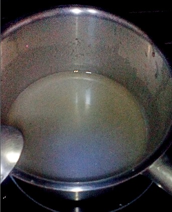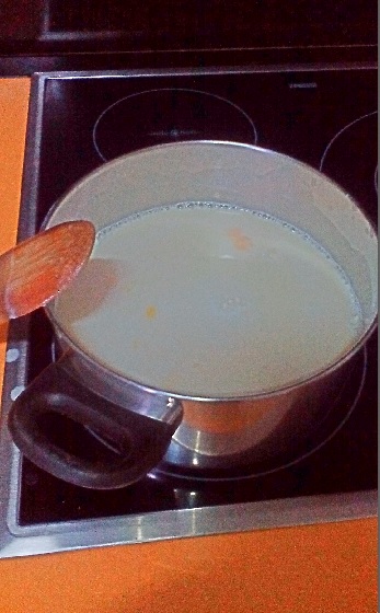 A fuego flojo vamos removiendo hasta que espese y coja textura y color de crema.Elaboración del almíbar