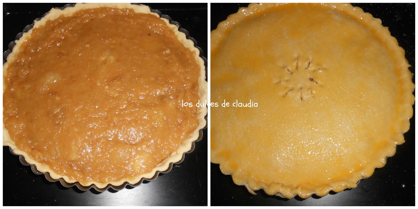 Rellenar el molde que ya tiene las masa precocinada , tapar con la masa restante y hornear 40 minutos.Pintar con huevo.