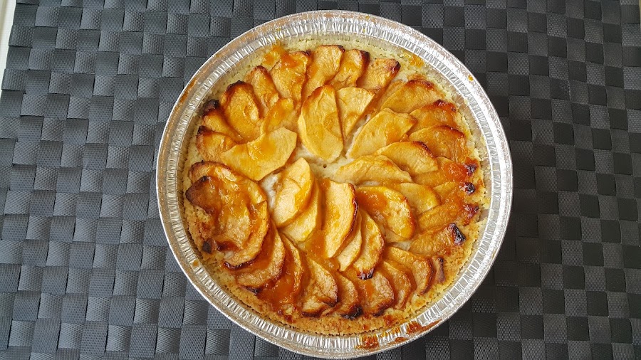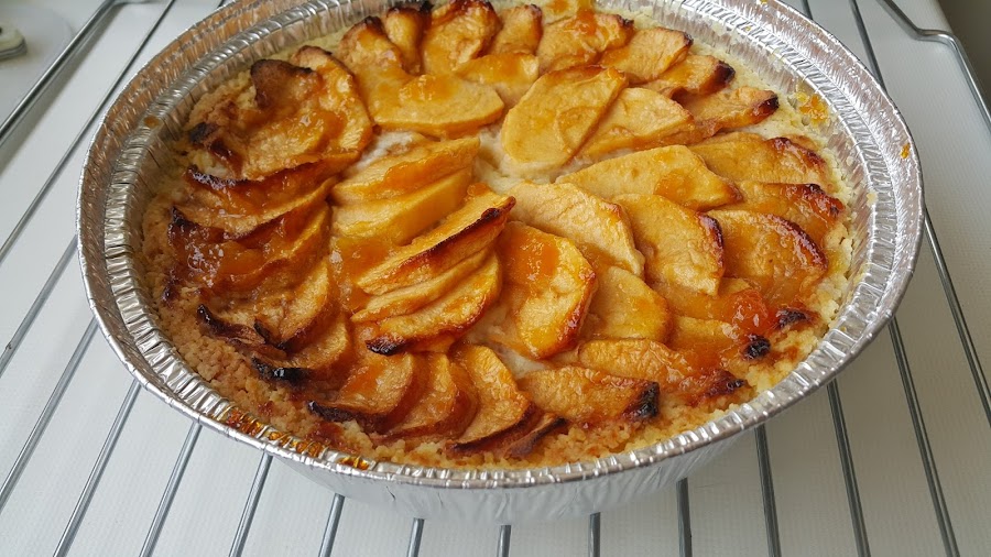 Horneamos la trata 30 minutos a 170ºC. Pasado este tiempo la sacamos, la pintamos con mermelada de albaricoque y la gratinamos unos 15 minutos.