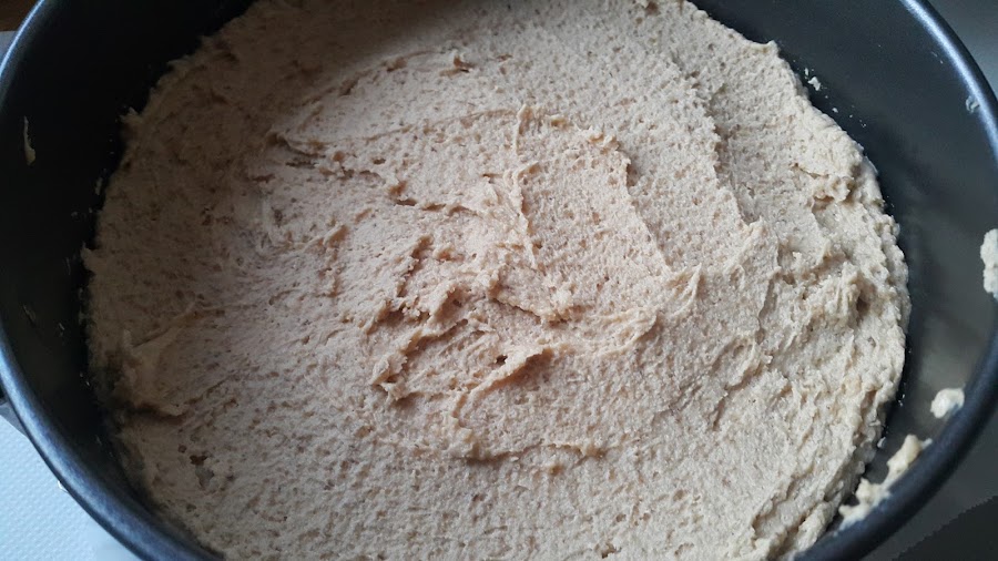 Nos quedará una masa pegajosa parecida a la de las galletas. La extendemos en un molde de unos 20cm de diámetro.