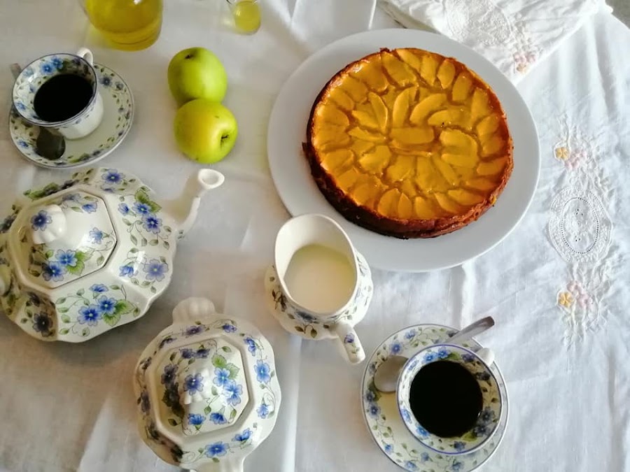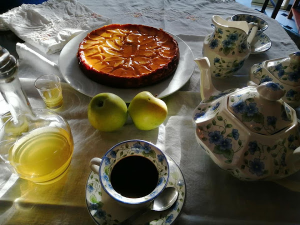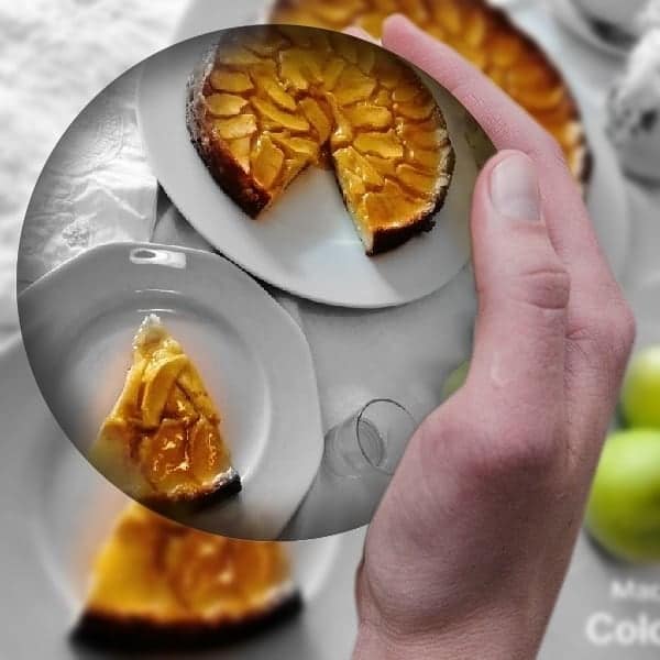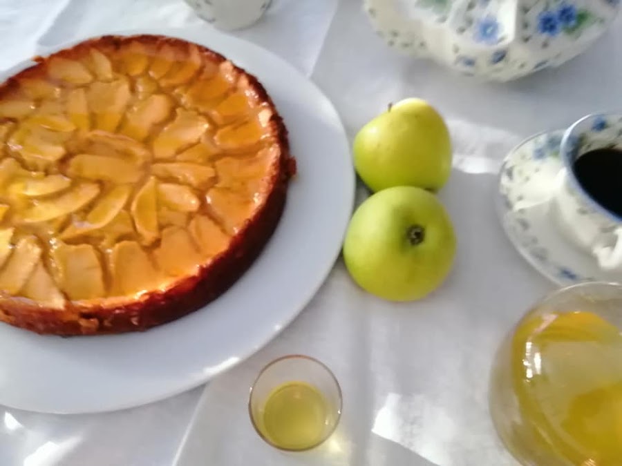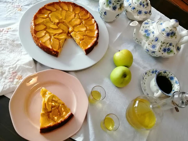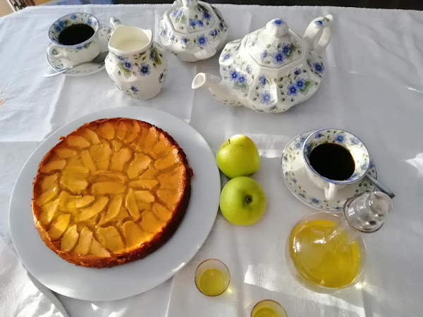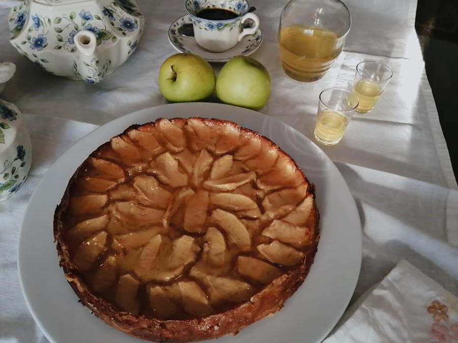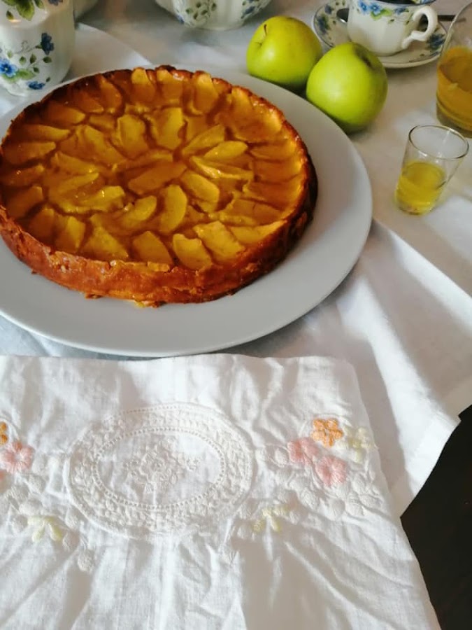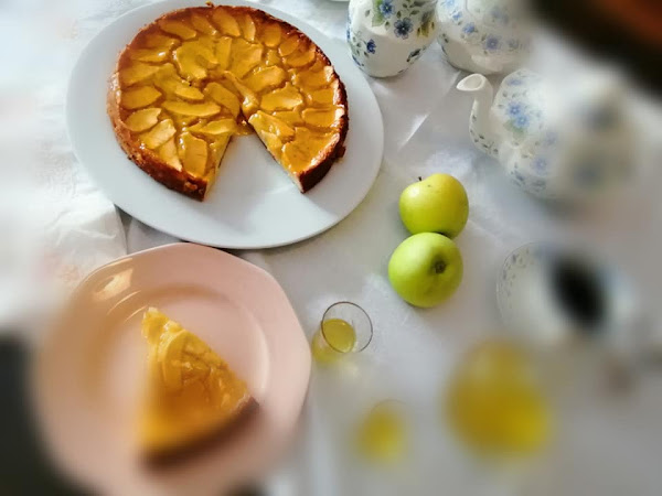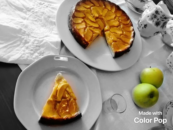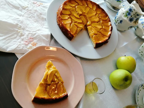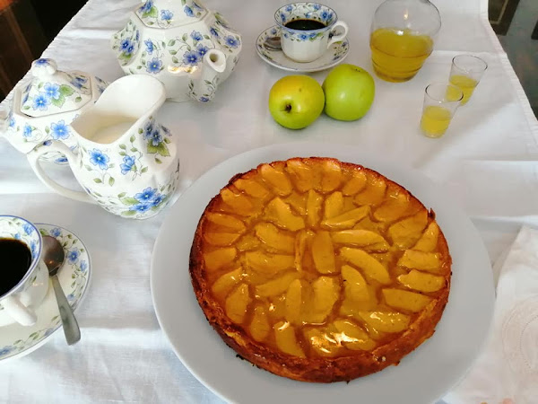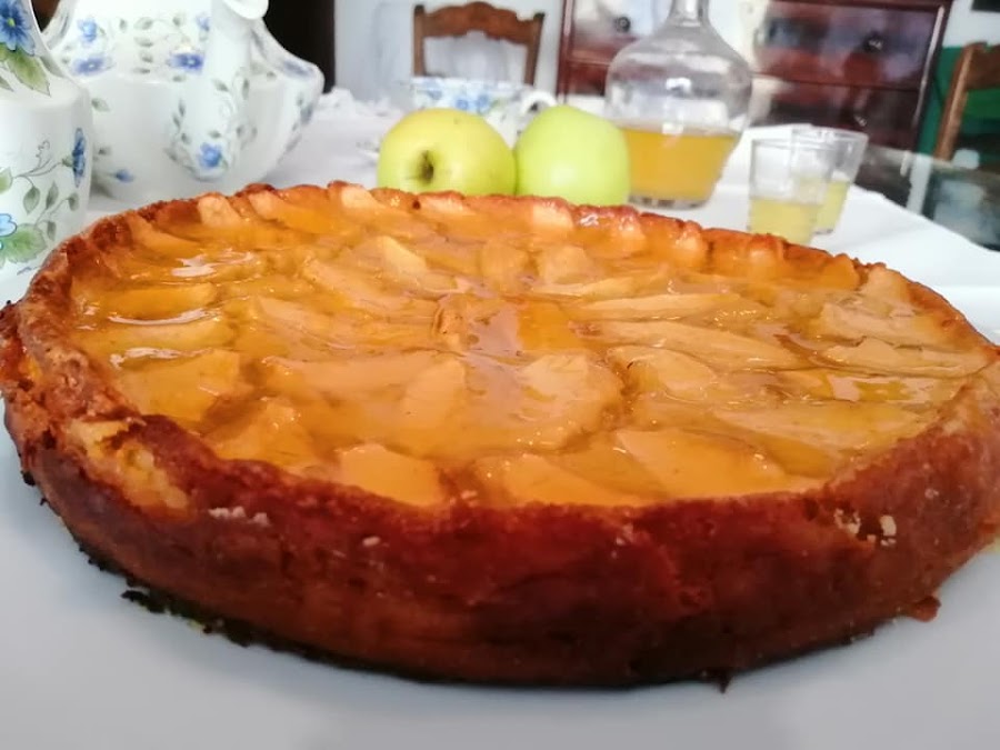 5- Seguidamente las colocamos en círculo sobre la mezcla hasta cubrir toda la superficie de la tarta, así tendrá ese aspecto tan característico que tienen las tartas de manzana, y una vez lista la llevamos al horno precalentado a 180°C durante 1h. aprox., estará hecha cuando al pincharla con un palito salga limpio o ligeramente húmedo.