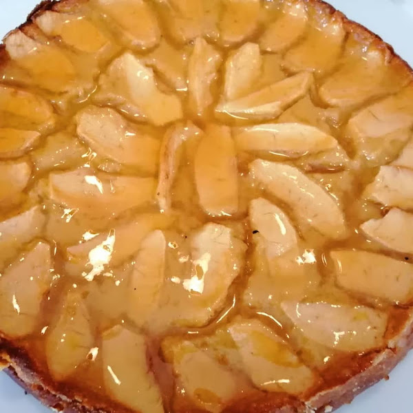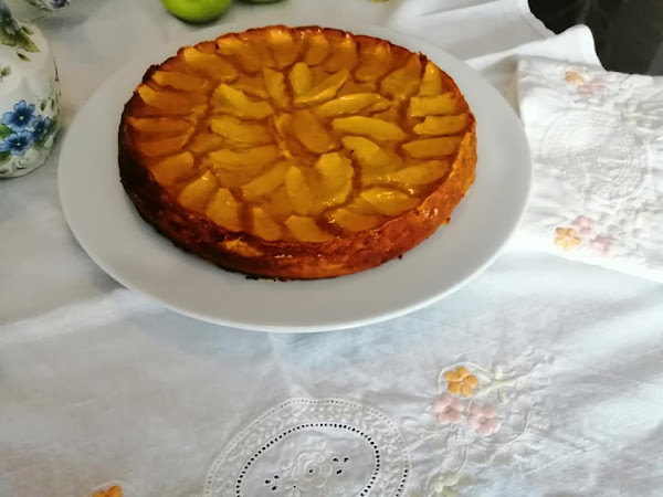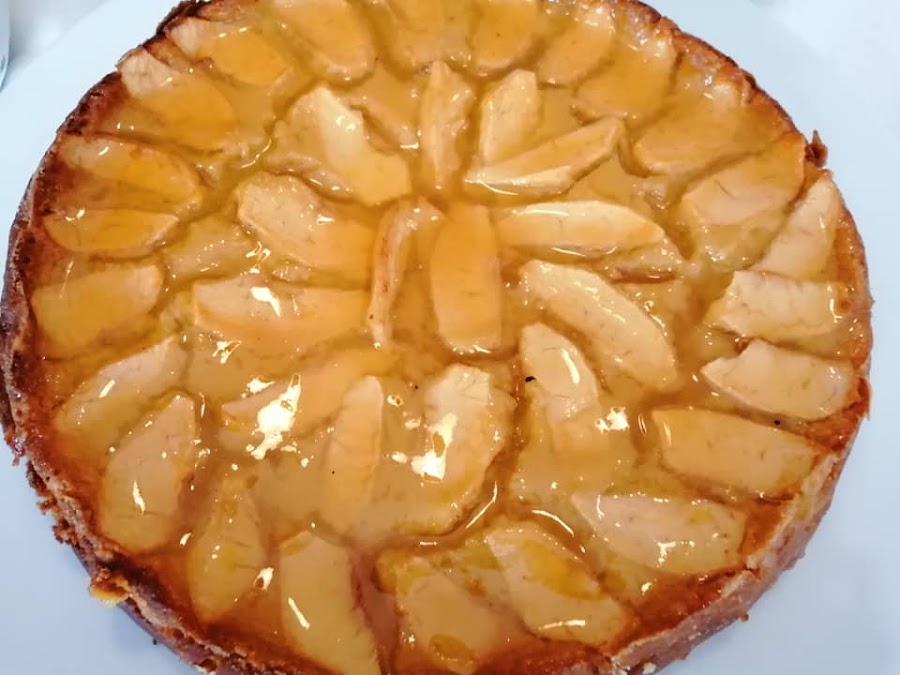 6- Cuando esté hecha la sacamos del horno y la dejamos enfriar completamente en el molde, a continuación la desmoldamos y para terminar ponemos una capa de almíbar realizado con agua, azúcar y mermelada de melocotón y pintamos toda la superficie para darle el máximo brillo a la tarta.