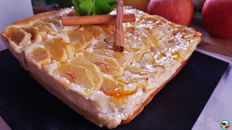 Para hoy tengo una fabulosa tarta de manzanas y plátanos.¡En casa nos gusta muchos las tarta y pasteles con manzanas!