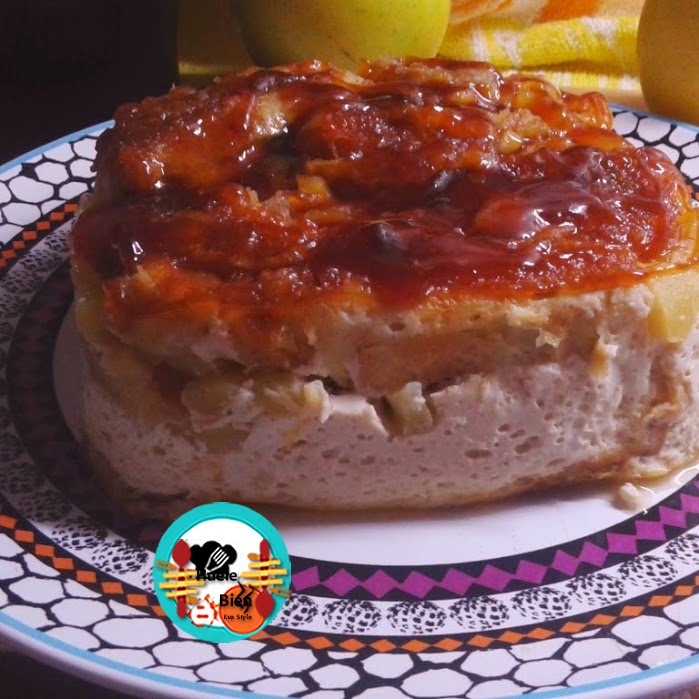 Les ofrecí el menú que publique esta semana para comer. Y de postre, quería servirles un flan de manzana. Pero cuando lo desmolde, parecía que se me había caído al suelo y lo puse luego sobre el plato.