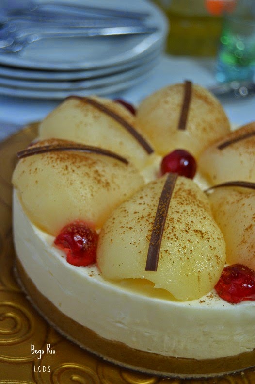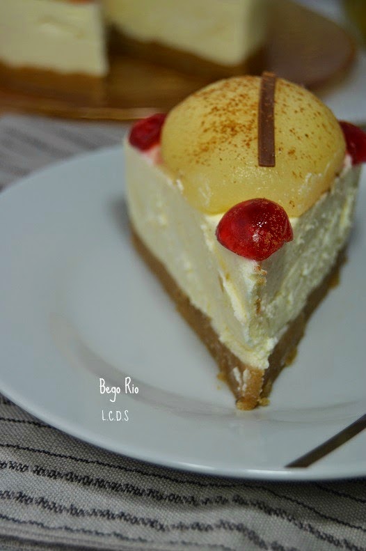 Una tarta de queso con fruta , ideal para este tiempo, es fresca y con un suave sabor a peras .