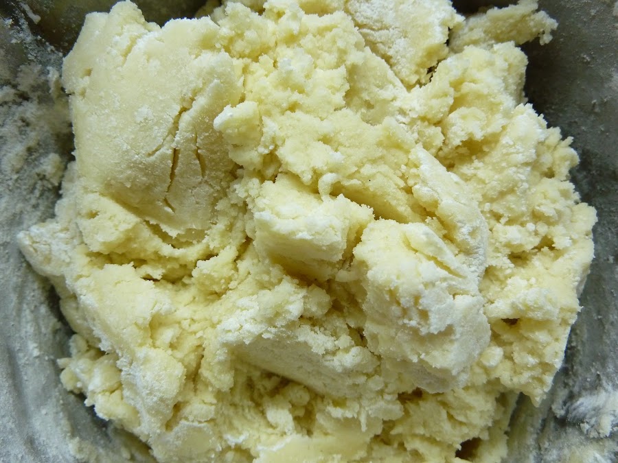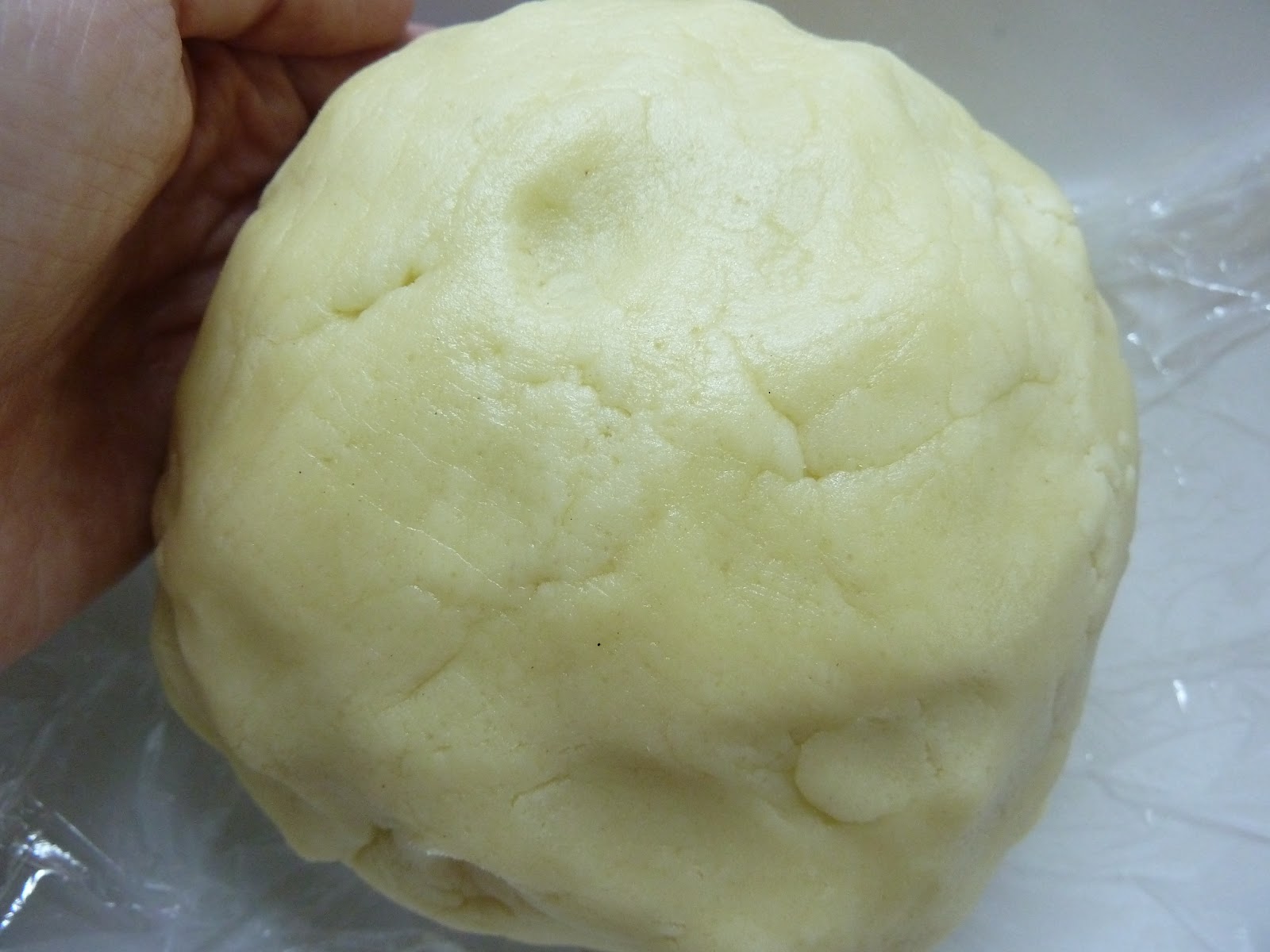 4) Formar una bola y envolver con film transparente para dejarla reposar en nevera unas 2 horas. Sacar 15 minutos antes de trabajar con ella. (Si preparas la masa el día antes y dejas la bola en la nevera durante toda la noche, al día siguiente estará demasiado dura para poderla extender, así que conviene quitarle el film y meterla al microondas durante 1 minuto, o menos, en modo "descongelación").