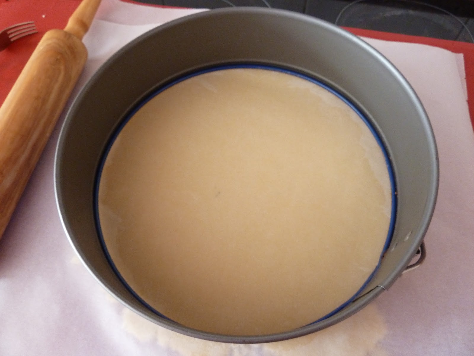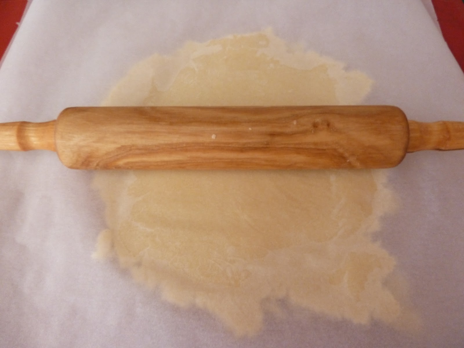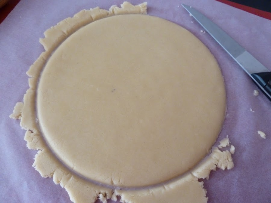 6) Estirar la masa entre dos pliegos de papel vegetal intentado darle forma circular, y dejándola con un grosor de poco más de 0.5cm.