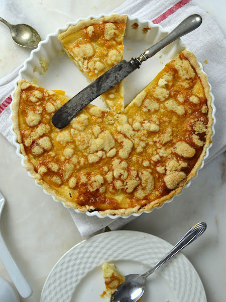Yo os tengo que confesar que creo que ha sido una de las tartas que mas me ha sorprendido ¡Ese toque crujiente es impresionante! Además aunque lleve melocotones en almíbar no es muy dulzona lo que hace que te puedas comer mas de un "trocito" y nos sirve igual para un postre que para una merienda dulce.. o con el café de la mañana.