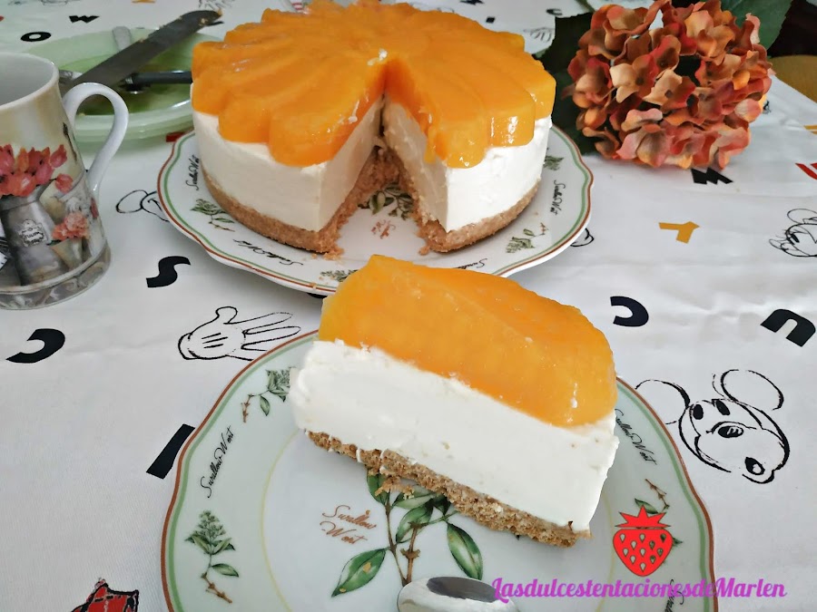 Esta tarta es fresquita, ideal para este tiempo primaveral. Muy fácil de hacer y la combinación de melocotón y coco la hace exquisita. Deseo que os guste!!!!