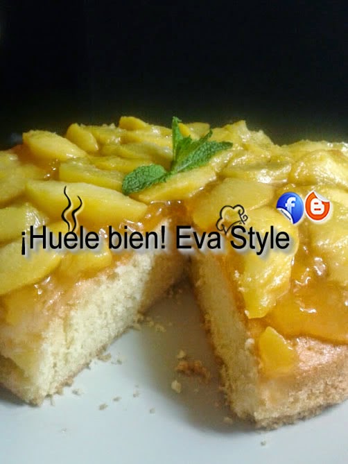 Ayer prepare esta tarta con melocotones de temporada. Para mi es una buena forma de tener a mano el desayuno y la merienda...