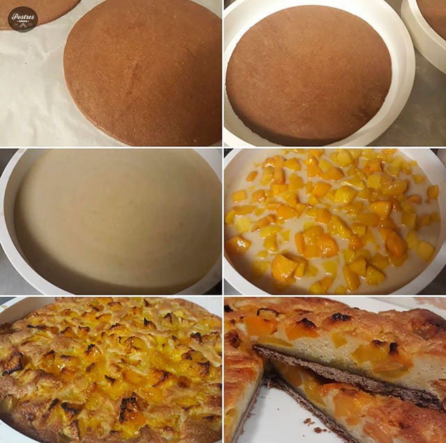 Si me vais siguiendo por Instagram os habréis dado cuenta que llevo unos días subiendo historias de postres de pastelería clásica, son cosas que voy haciendo en el trabajo y aunque a mí me gusta mucho innovar y hacer cosas diferentes al resto, tengo que reconocer que los postres de corte más tradicional también tienen su encanto, y es que a veces no hace falta complicarse mucho para hacer un postre bien rico, así que hoy os traigo una deliciosa y sencilla tarta de melocotones, con la que podréis sorprender en vuestros desayunos y meriendas.