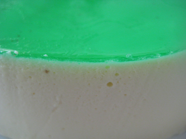 Para hacer el relleno Hidratar en agua fría las hojas de gelatina. Calentar la leche con el azúcar y cuando esté bien caliente añadir las hojas de gelatina. En un bol poner los dos yogures griegos, el zumo de limón, la pasta de mojito y el ron y verter la leche en la que se han diluido las 5 hojas de gelatina. Trabajar con varillas, hasta que todo quede bien mezclado. Entonces añadir la nata (crema de leche) semimontada o nata (crema de leche) de textura espesa bien fría (yo si me decido por esta empleo la de President o la de Mercadona), mezclar con las varillas hasta que este uniforme y sin nada de grumos. Verter este preparado sobre el bizcocho, dejando un espacio como de 1/2 cm. sin llenar para luego poder poner el glaseado y dejar en la nevera al menos un par de horas o si se quiere hasta el día siguiente.