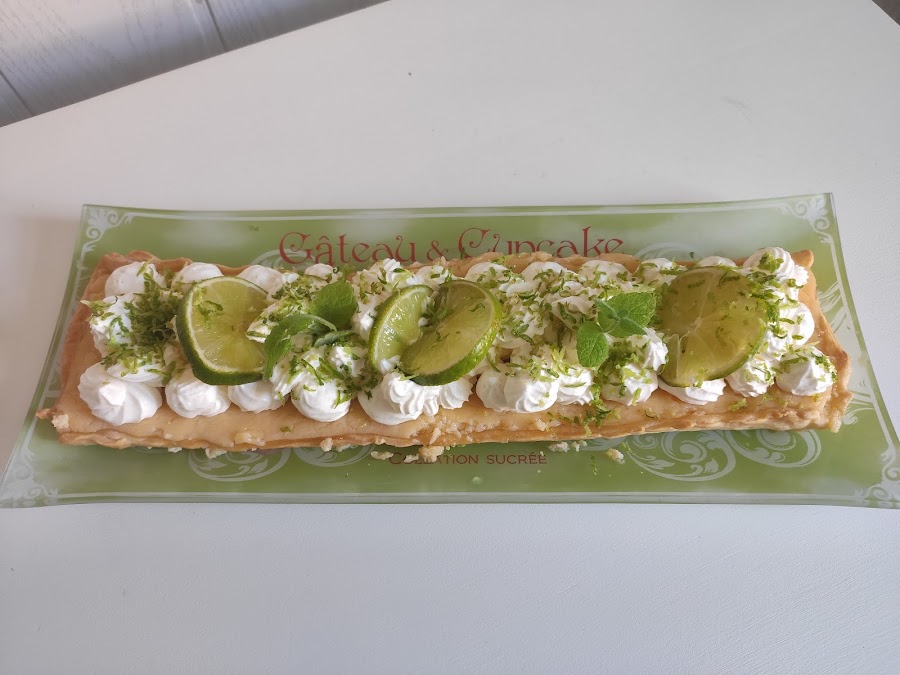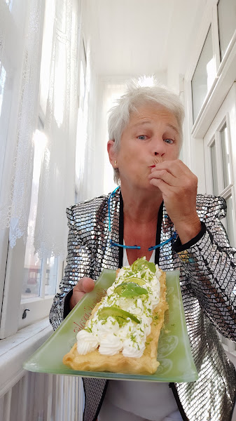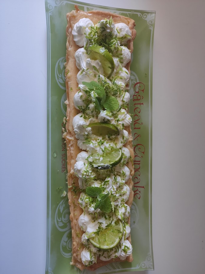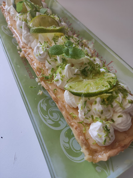 Montamos la nata (crema de leche) con el azúcar. Decoramos con ayuda de una manga pastelera y haciendo rosetones. Rallamos lima y decoramos con la ralladura. Metemos al frigorífico y la tomamos bien fresquita.