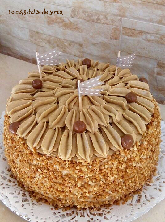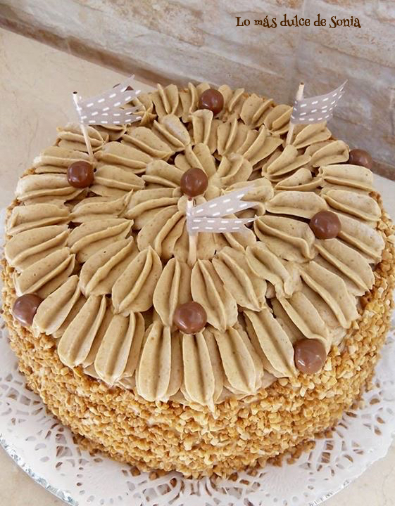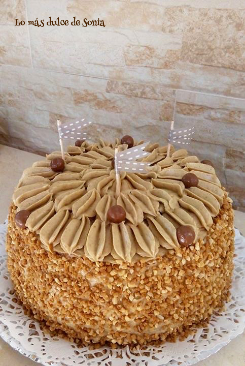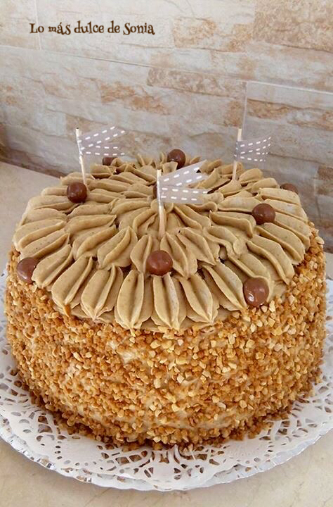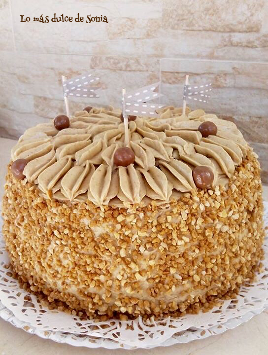 La tarta de las fotos son con un bizcocho de ocho huevos, es decir el doble de cantidades.