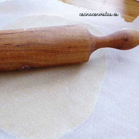extendemos la masa hasta que tenga un diámetro que cubra la base de la sartén y suba como dos dedos por los bordes.