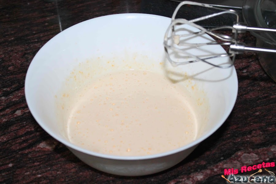 Ahora cascamos los huevos y separaremos las yemas de las claras, estas las levantaremos a punto de nieve, reservamos.