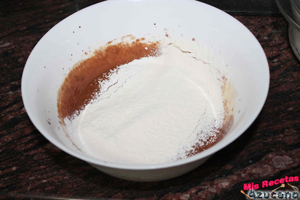 Encima de este mismo cuenco tamizaremos la harina, la maicena y la levadura, mezclamos todo con cuidado y unimos todos los ingredientes.